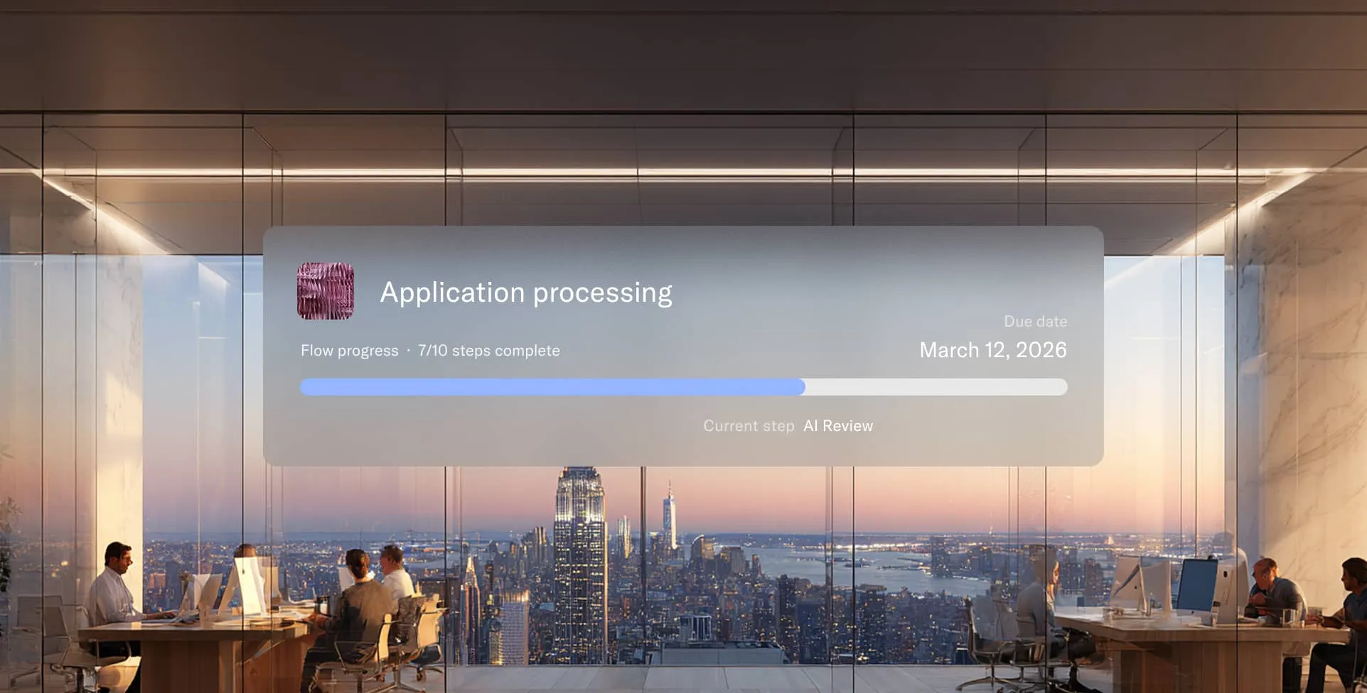 Faster account opening, fewer compliance bottlenecks, less time chasing documents and approvals. Reviews move on schedule. Operations doesn't stall waiting on missing information. And your team has clear visibility into what's complete, what's pending, and what needs attention—without digging through email or portals.